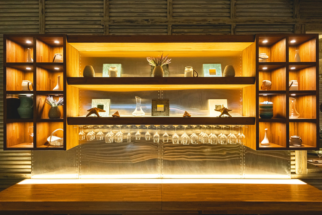 Ю. Б.: Первоначально это была клубная зона закрытого типа площадью порядка 800 кв. м, которая вмещала до 500 посадочных мест при общей загрузке около 1 000 человек. На сегодняшний день ее вместительность возросла – 800 посадочных мест, до 5 000 гостей ночью и 1 300 отдыхающих днем. На территории функционируют четыре бассейна – один детский, два – для взрослых и детей и один сугубо для взрослых возрастом старше 16 лет. Также песчаная зона полностью оборудована для комфортного отдыха. Пляж работает до 18:00, затем осуществляется смена мебели на ресторанную. И днем и ночью в «Ибице» дополнительно работают два автономных ресторана помимо основного: это «Форментера» со средиземноморской кухней и «IО» – японский ресторан. Эти заведения доступны для трапез и банкетов. Стилистический концепт «Форментеры» включает в себя элементы дизайна, традиционные для испанских островов: преобладание белого и лазурного цветов; шторы и провисающие светлые льняные полотна, украшающие потолок; большое количество зелени; декор с морской тематикой, выполненный вручную из натурального дерева теплых оттенков. В ресторане также есть винотека, изготовленная из стали и стекла. На втором этаже расположена открытая терраса с видом на море и бассейн. Элементы декора и панно лаконично дополнены теплой вечерней подсветкой. «IO» же, в свою очередь, отличается выдержанным японским минимализмом. В нем пол частично выполнен из прозрачного стекла, очень много натурального бамбука в оформлении, в том числе на потолке. С него открывается вид как на море, так и на концертную зону.